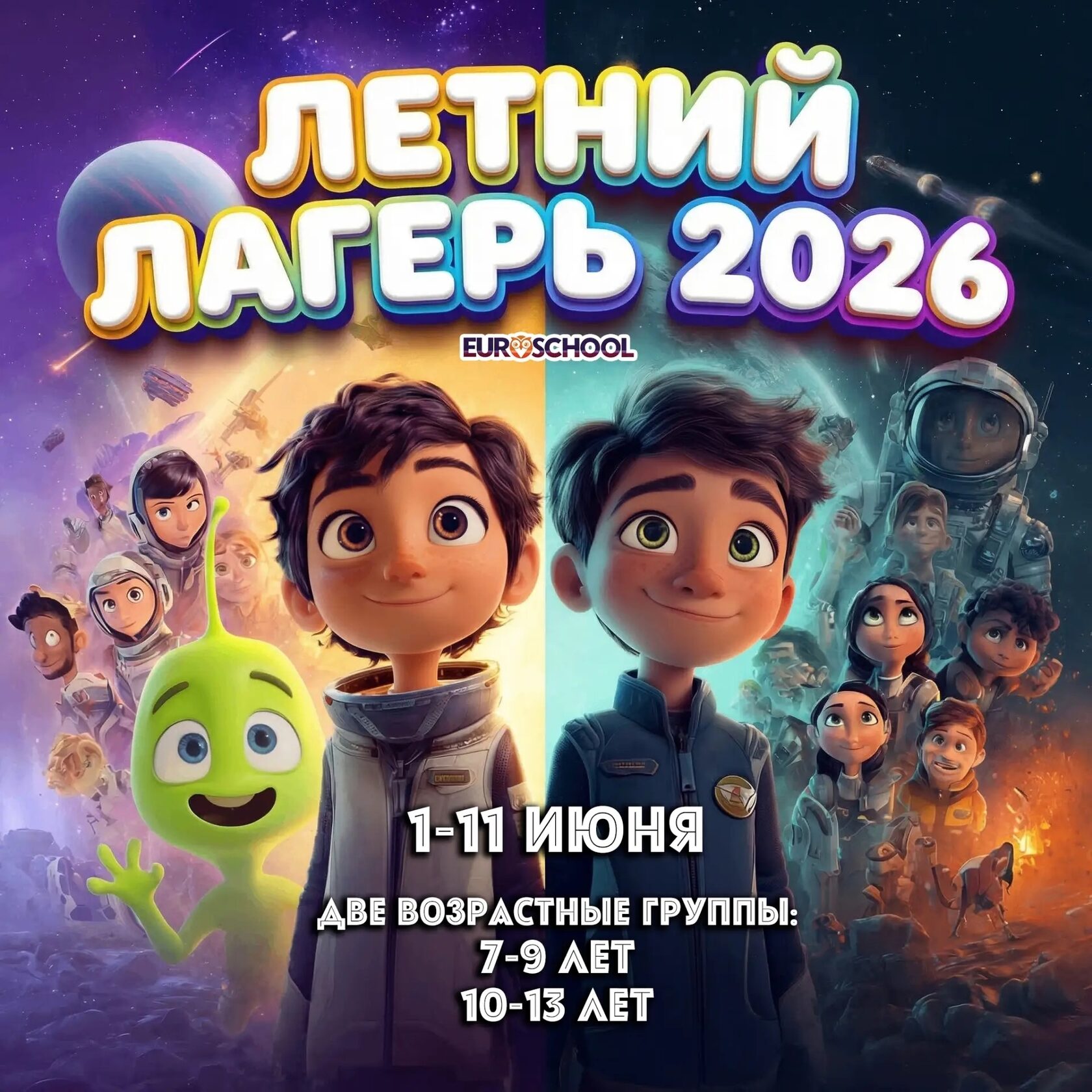 Приглашаем ваших детей провести незабываемое лето вместе с Еврошколой! С 1 по 11 июня мы открываем двери нашего увлекательного летнего лагеря, где обучение английскому превращается в игру, творческий поиск и настоящее приключение.